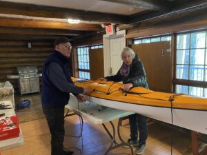 I’m usually daunted by repairs. I mean, if you need something fixed, best to get it done by someone who knows what they’re doing, right? My deck lines had lost their give, and the hatch cords were frayed and loose. It was time. I had been procrastinating on taking my boat somewhere to get these done and then noticed a club workshop was scheduled for the first day of spring. At $40, including the cost of materials, it was a good deal. I signed up. When I mentioned to Maureen that I felt daunted by this, she assured me that it was easy.